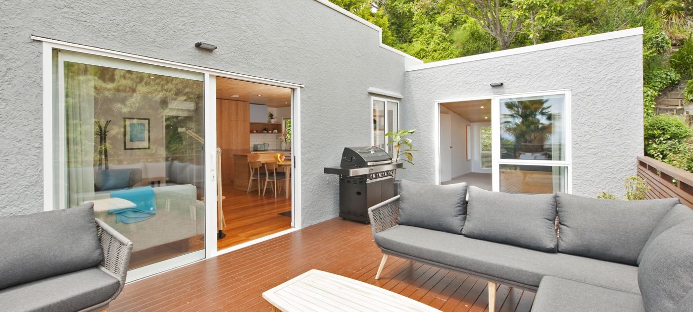 Outside, the home was strengthened and future-proofed with foundation strengthening, retaining walls, and a new asphalt driveway. A large deck was added to extend the living space outdoors, creating an ideal setup for entertaining and everyday relaxation.