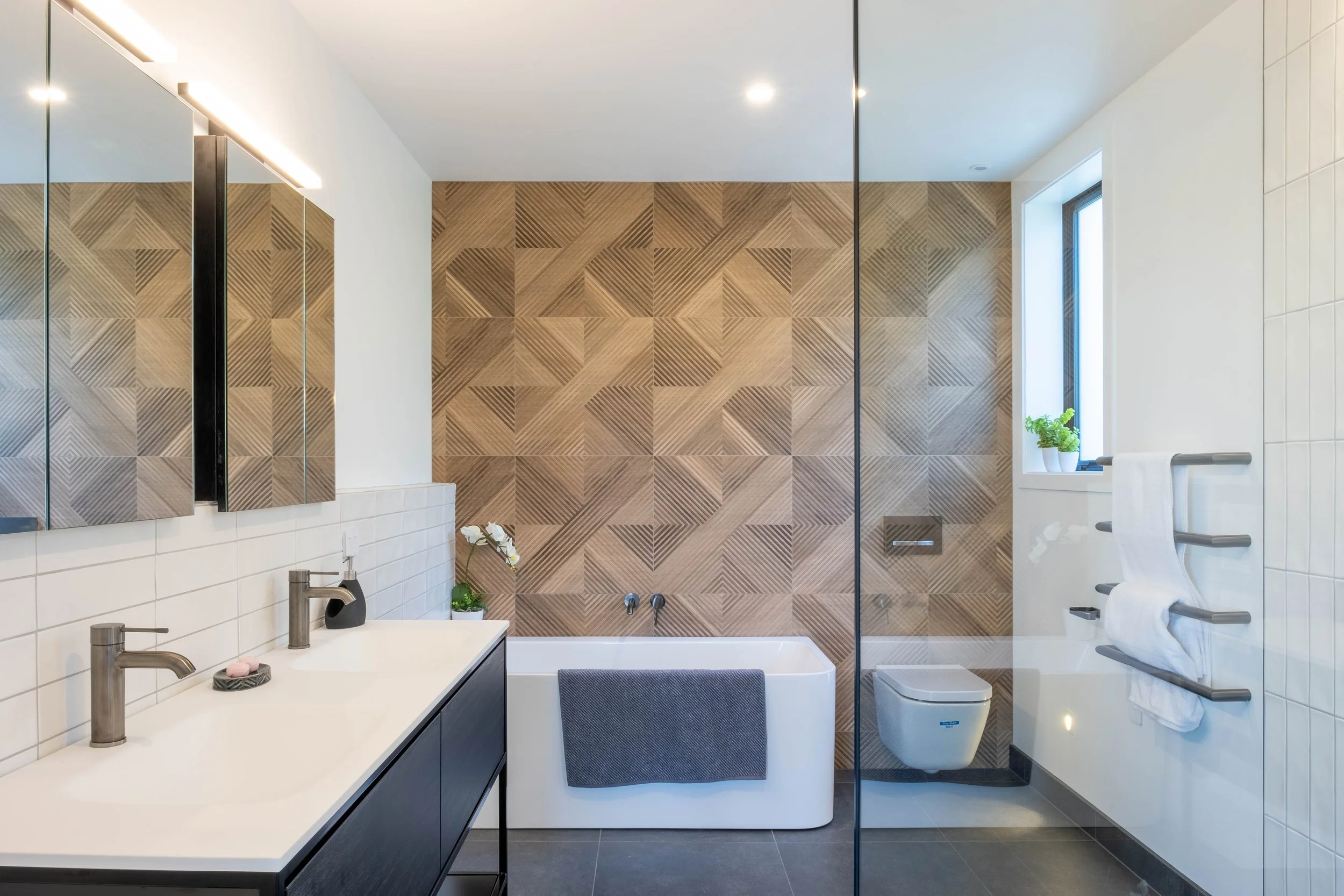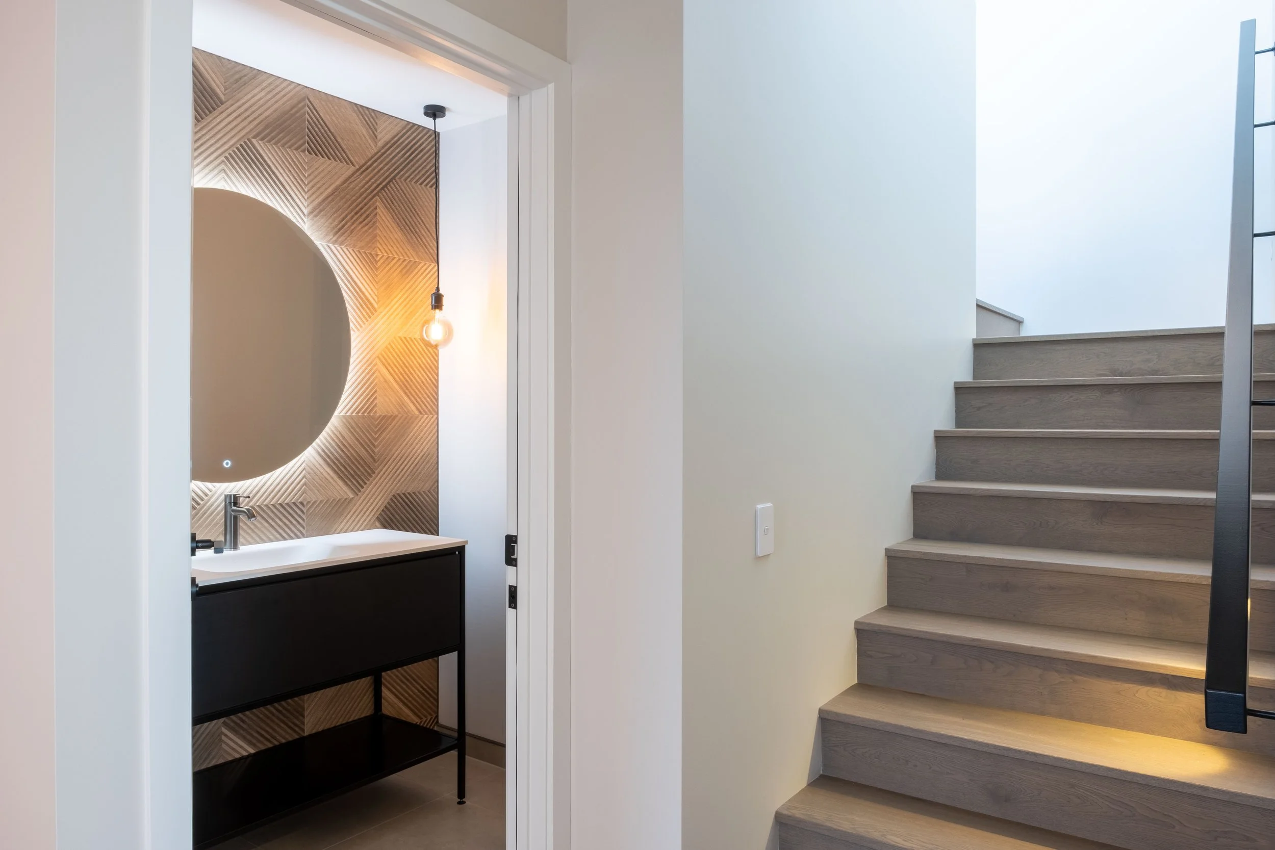 Another striking feature is the Italian tiles in the living room, powder room, ensuite and upstairs bathroom. “There were not many made of these,” explains Antonieta. “They are the same pattern but in slightly different shades in the different places to suit the ambience of each. It is lovely to have features like this that won’t be seen in many other places.” “We have so appreciated Steve and Lilly’s attention to detail everywhere,” says Ron. “There is no cutting of corners which makes for such a wonderful finish in both the aspects you can see and all the ones you can’t.” All the doors are sealed with rubber, for example, an extra step to improve soundproofing. “We are known for being very fussy,” laughs Steve. “Everything has to function the very best it can and even though the owners mostly only see the finish, we make sure that every step of each build or renovation we undertake is to the highest standard it can be. Our motto is ‘do it once, do it right’”.