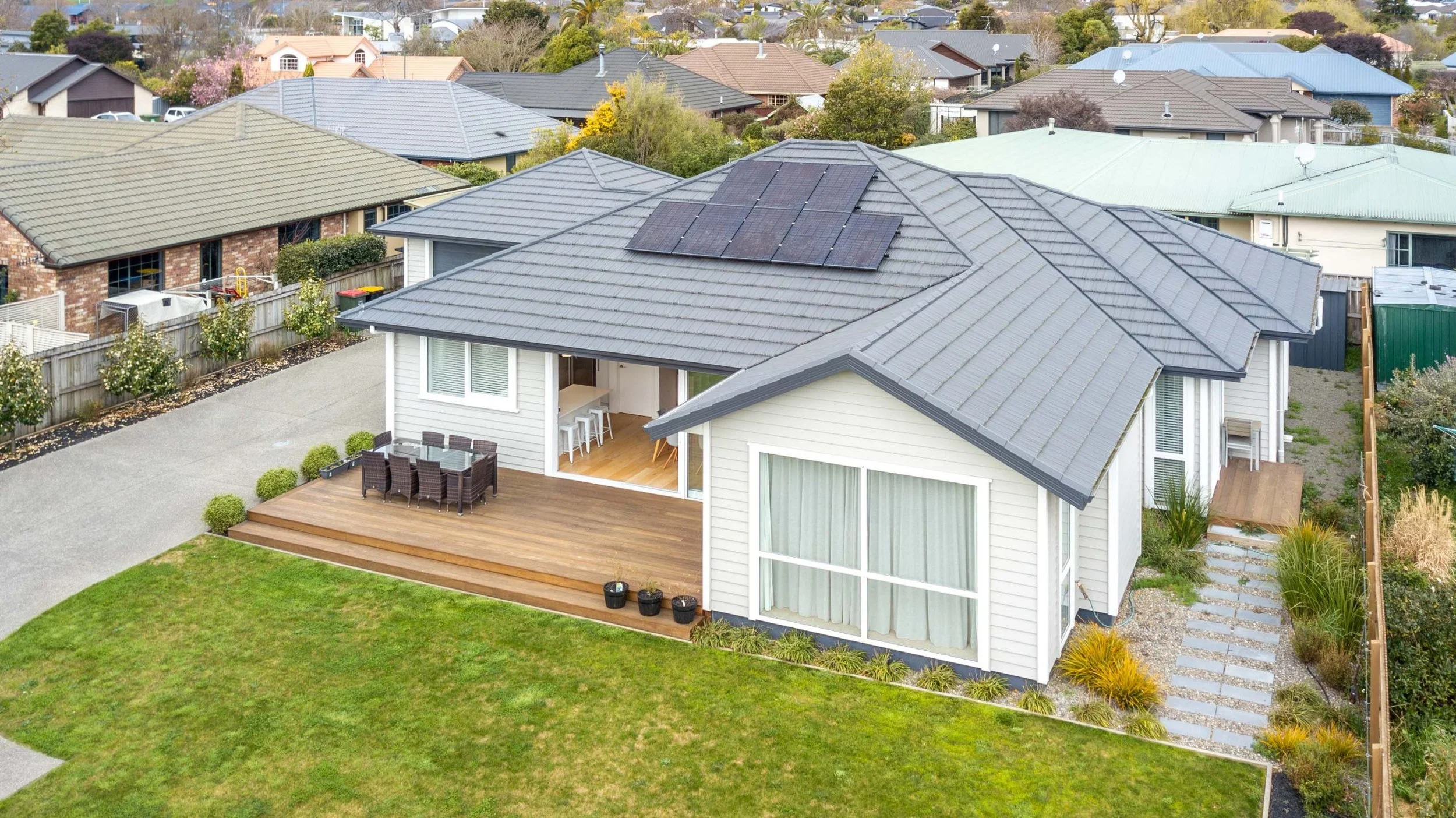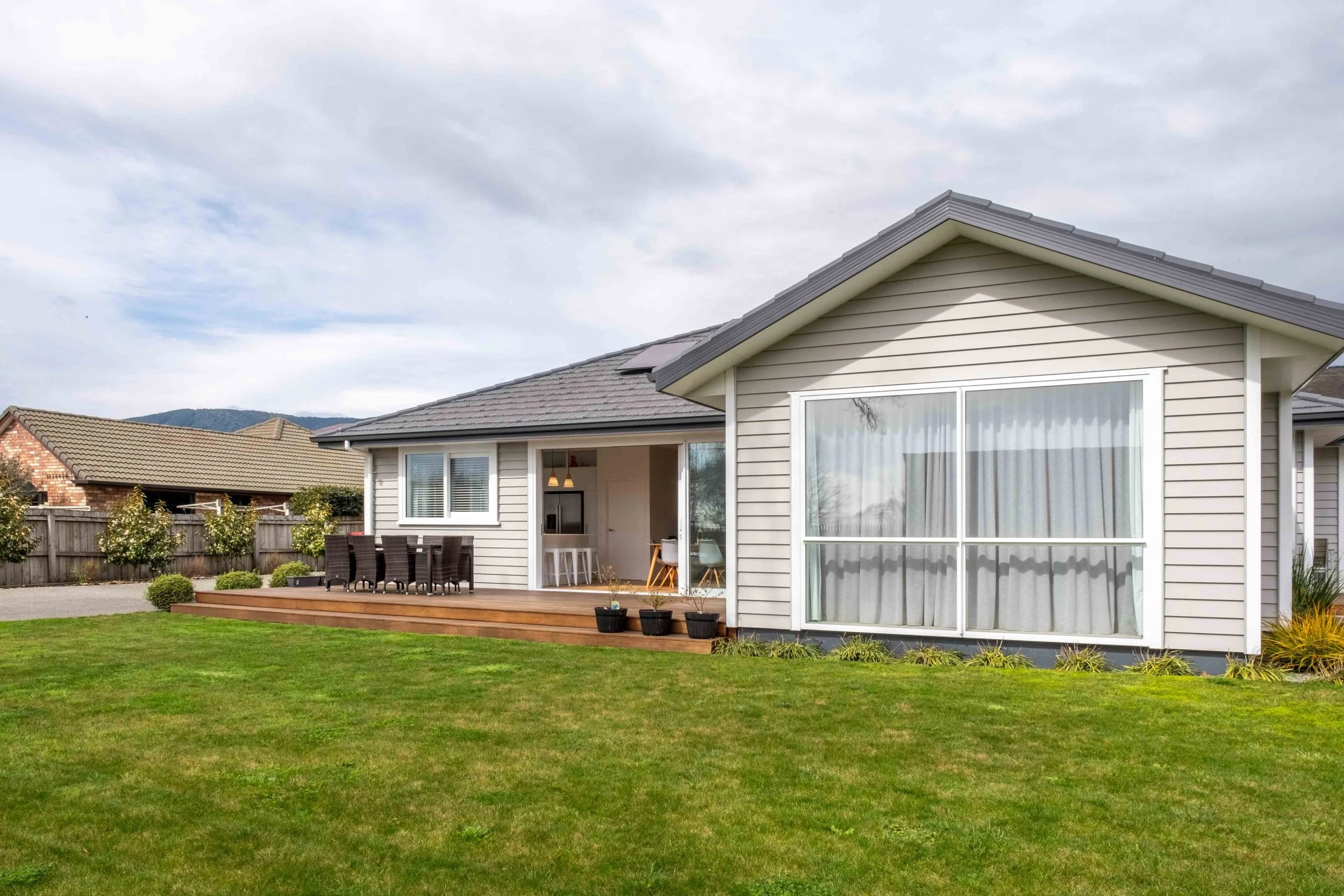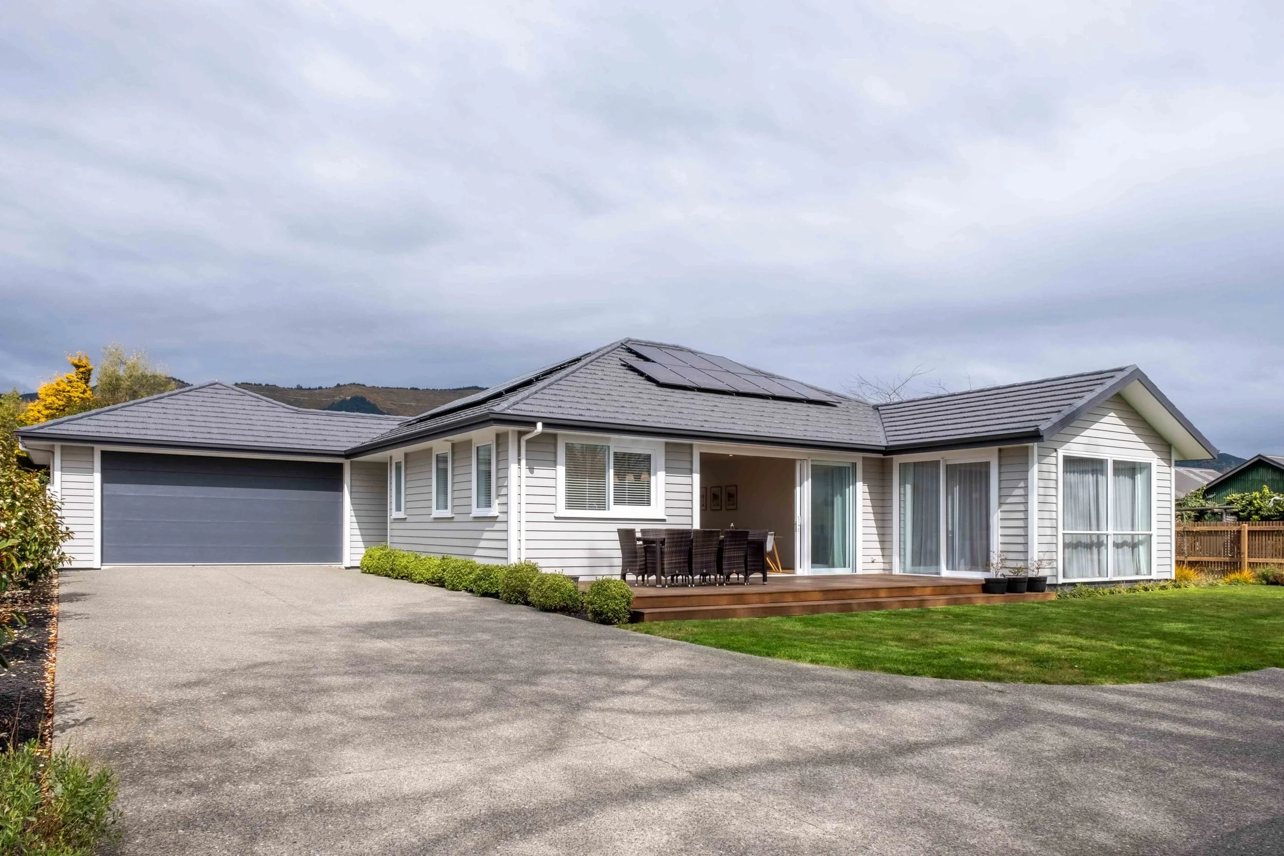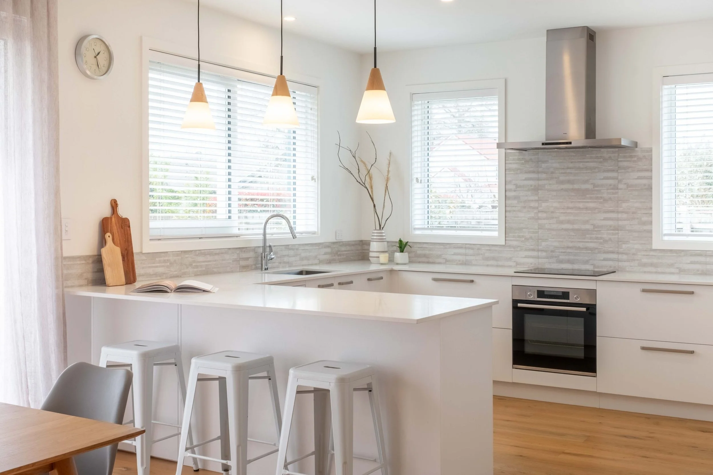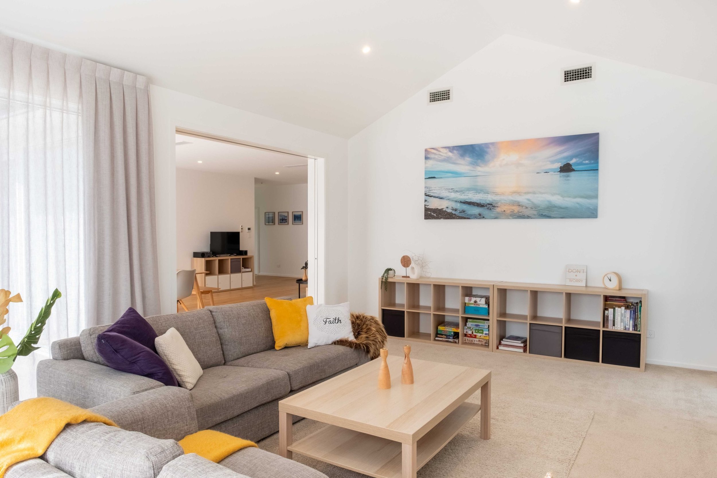 Custom joinery in the kitchen gives a personalised touch, while the engineered stone benchtops and high-quality European finishes elevate the contemporary style of this home. The warm and energy-efficient design ensures year-round comfort, with a ducted heat pump with heat recovery and thermally broken windows.